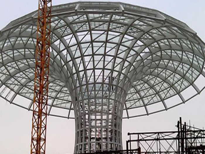 二、球形网架结构因其结构新颖,受力合理,自重轻、用钢量低等优点。如大型体育场馆球形福安螺栓球网架、公共场馆球形网架、电厂福安螺栓球网架、水泥工业球形网架、仓储物流球形网架、福安干煤棚工业球形网架、福安收费站福安加油站球形网架、展览中心、影剧院、商场、航站楼、候车厅、工厂福安车间、仓库、电视塔等球形螺栓球节点网架。国内球形网架结构主要分为:福安焊接球节点网架及螺栓球节点网架两种。螺栓球节点网架其构件工厂内加工量较大,现场安装便捷,适用于现场工期紧,福安施工条件、用电量受制约,网架形状复杂、福安杆件定位困难的异形结构。螺栓球节点球形网架系统基本由福安杆件、螺栓球、支撑支座等组成。按照节点形式可分为交叉福安桁架体系、四角锥体系、三角锥体系等。支撑方式多为固定支座支撑。对于大面积、大跨度及有特殊受力或伸缩要求的网架结构可采用橡胶支座、滑移支座、球铰支座等支撑形式,以满足结构自身的受力稳定、均衡,便于内力释放等设计要求。